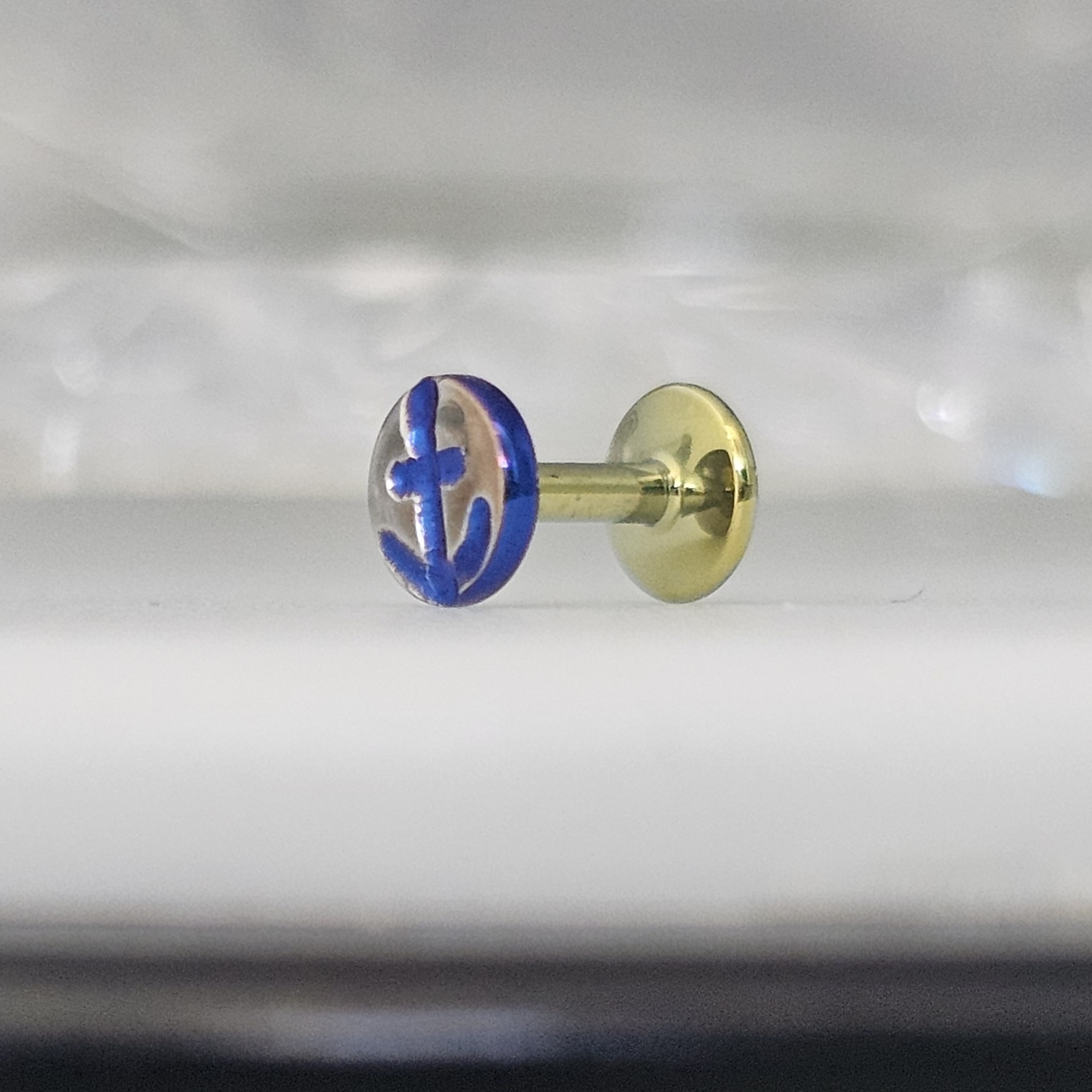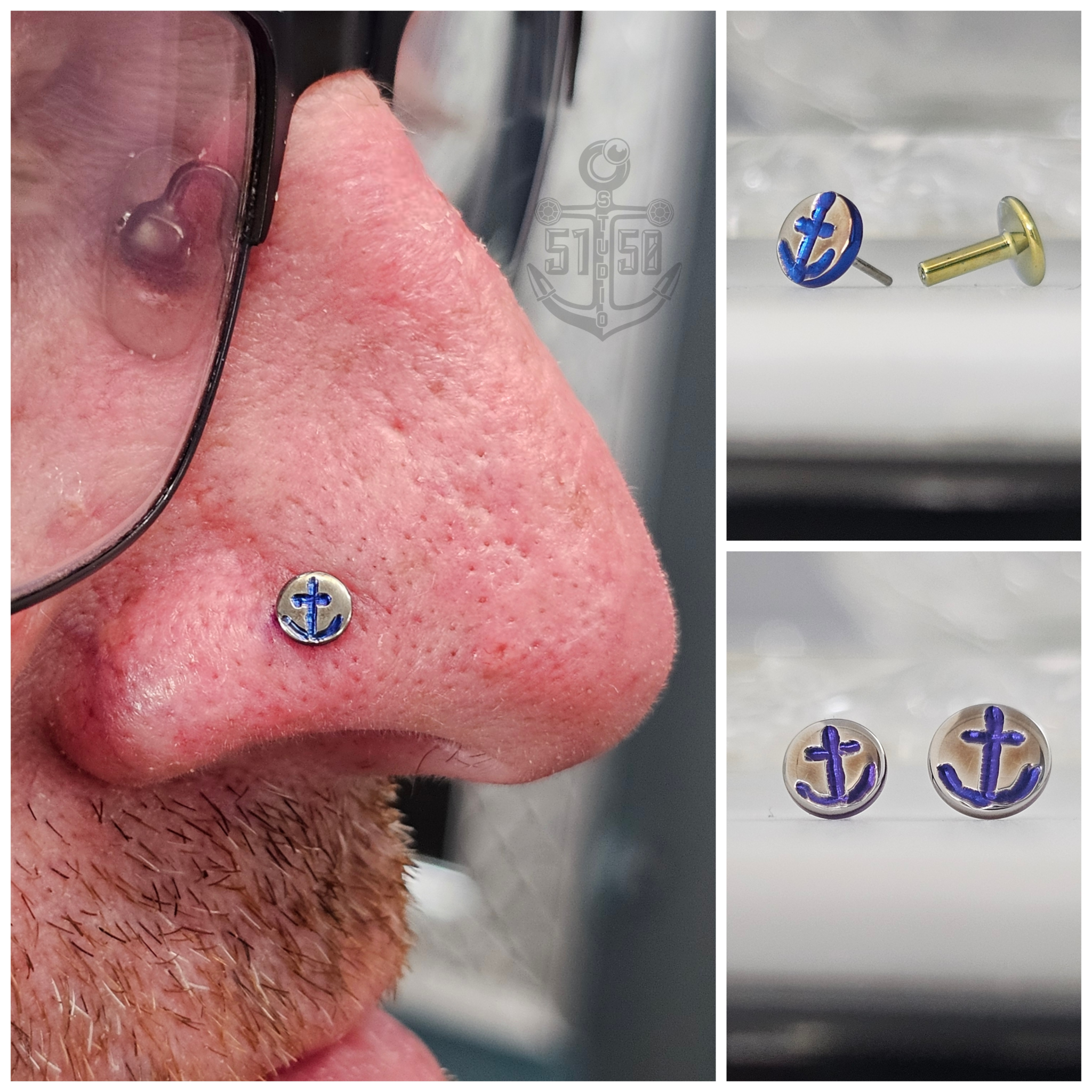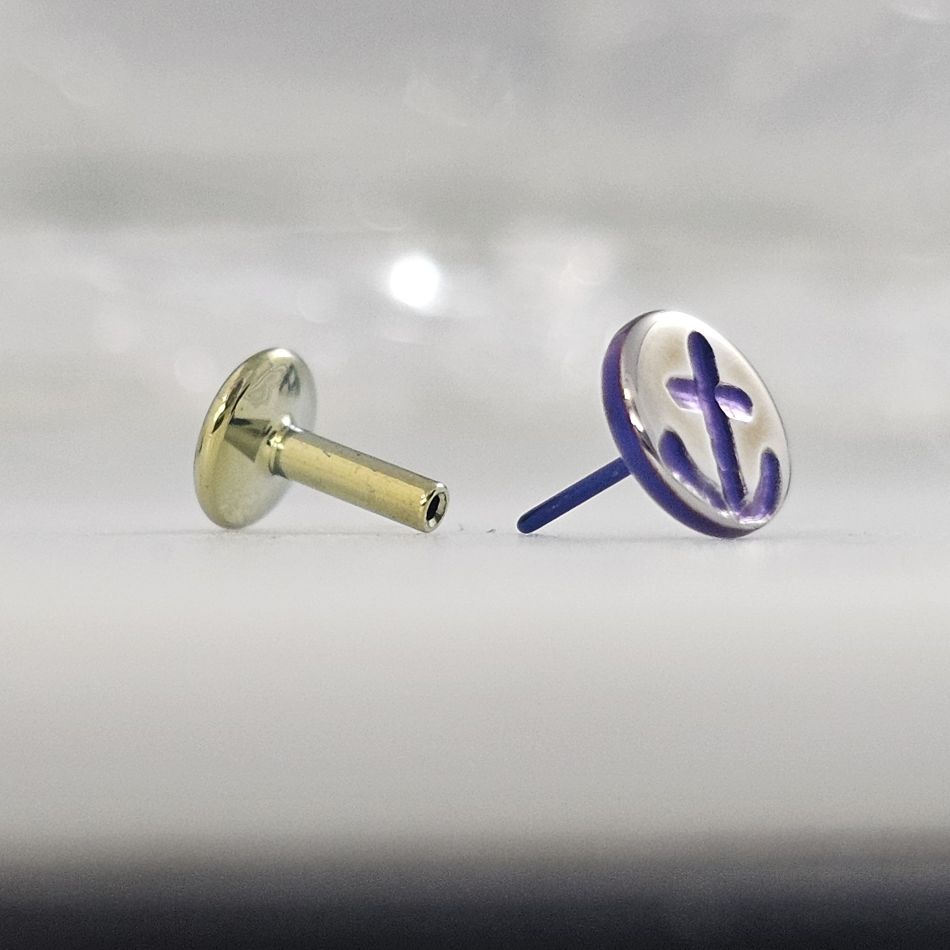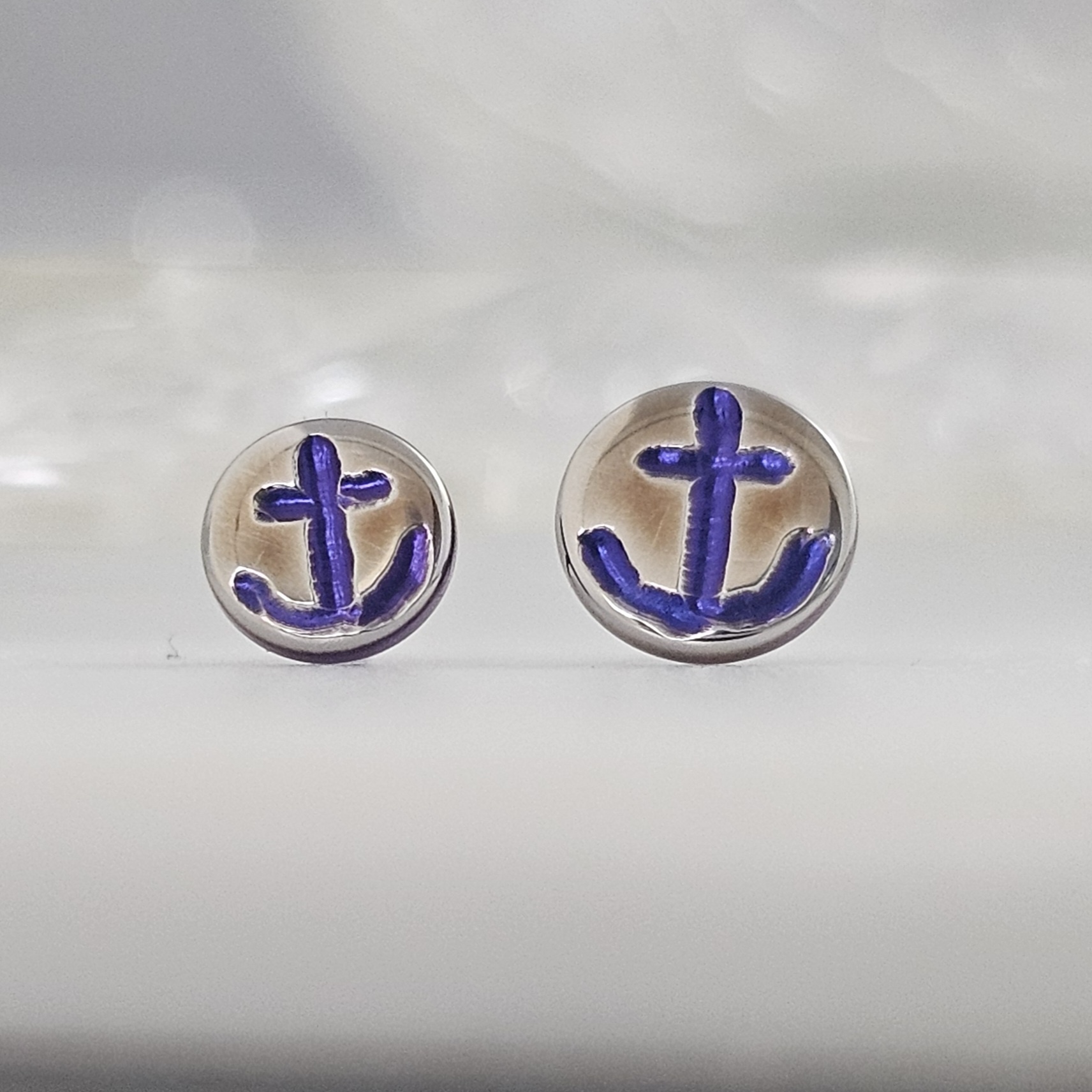 These Anchor Disk ends are each hand-carved with love, right here in our studio. Due to their handmade nature, they may vary slightly from the photo. We carve the anchor right into the face of the disk, anodize the entire disk, then polish the front back to silver tone to make the anchor stand out!