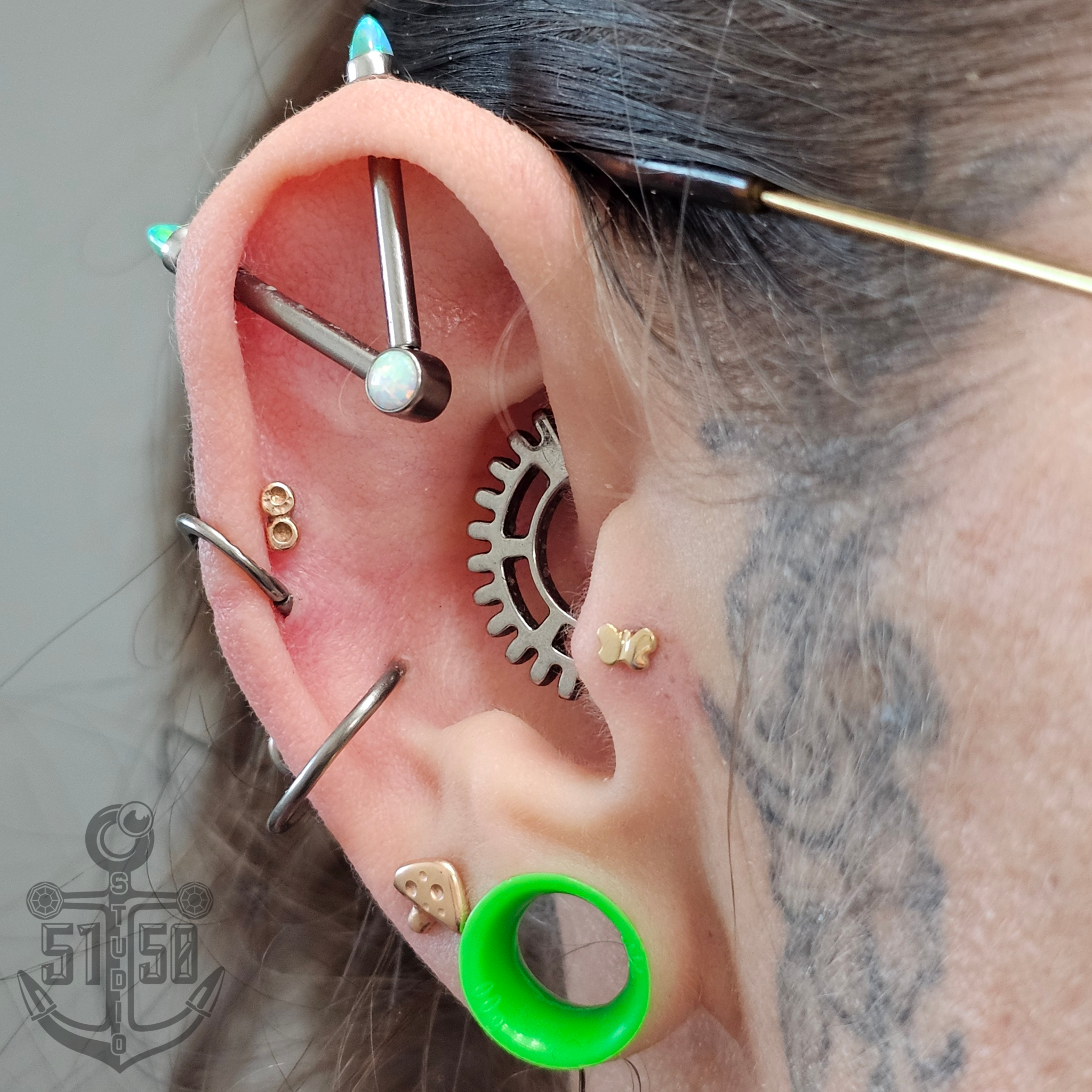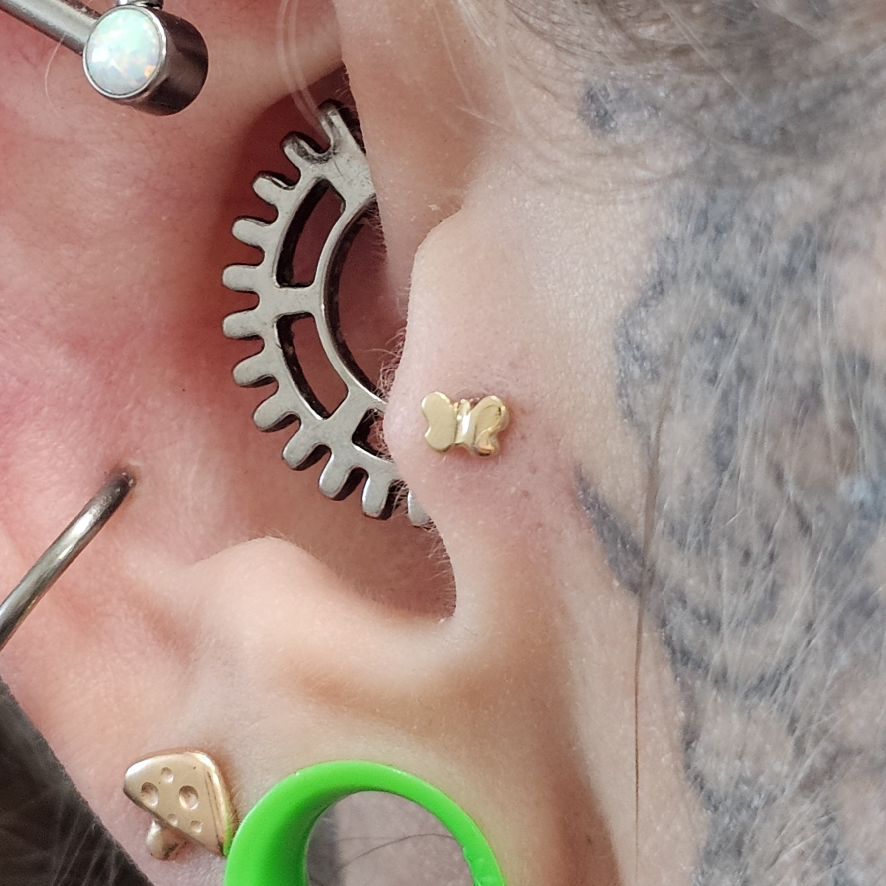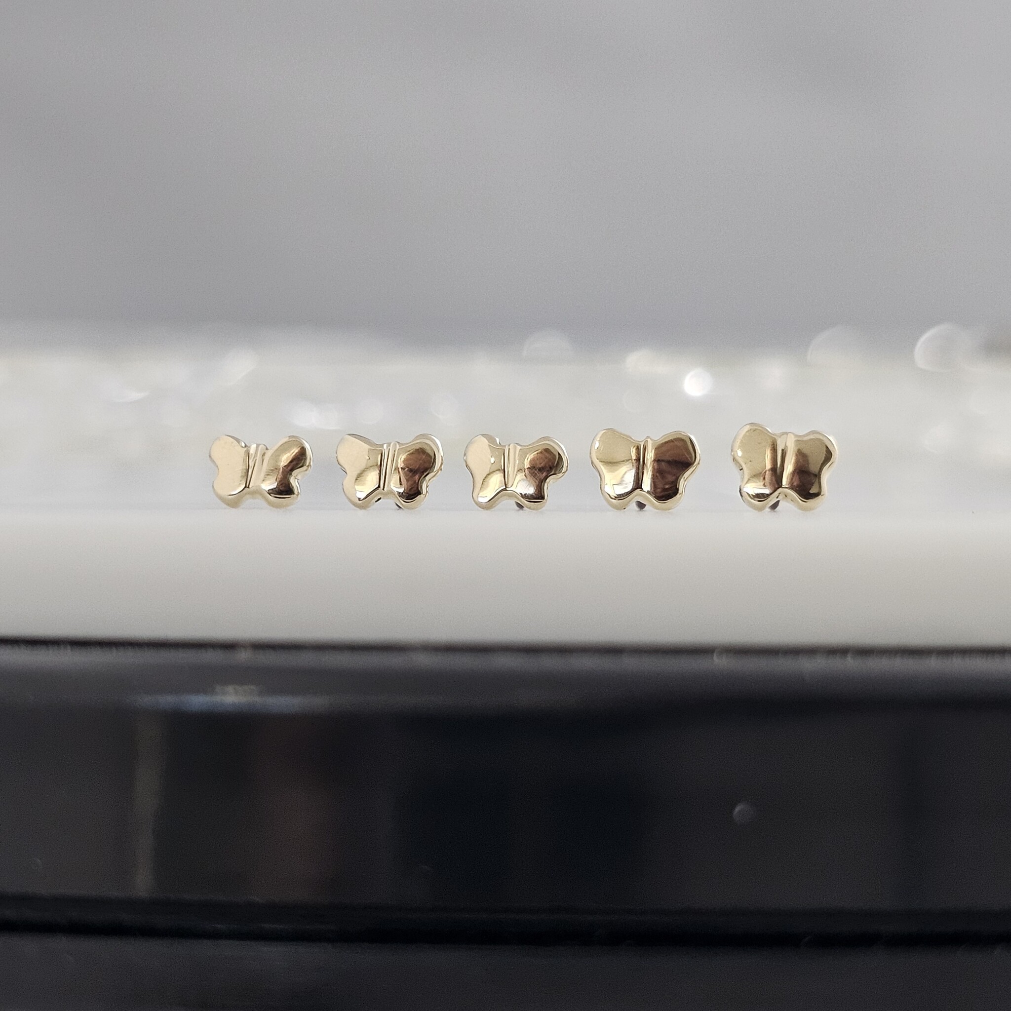 These adorable butterflies are each hand-carved here at Studio 5150. They measure approximately 4mm across and 3mm tall, 0.9mm thick. Perfect for most ear, nostril, and lip piercings.