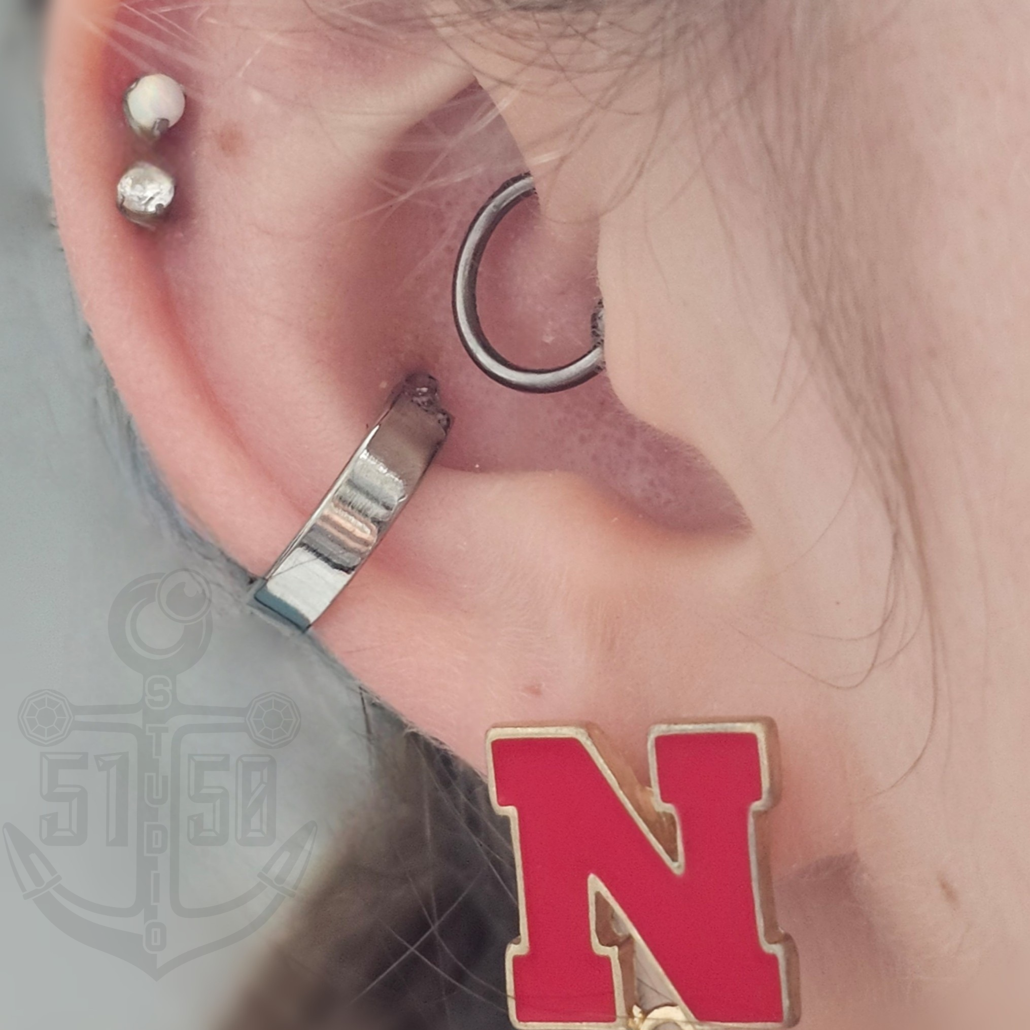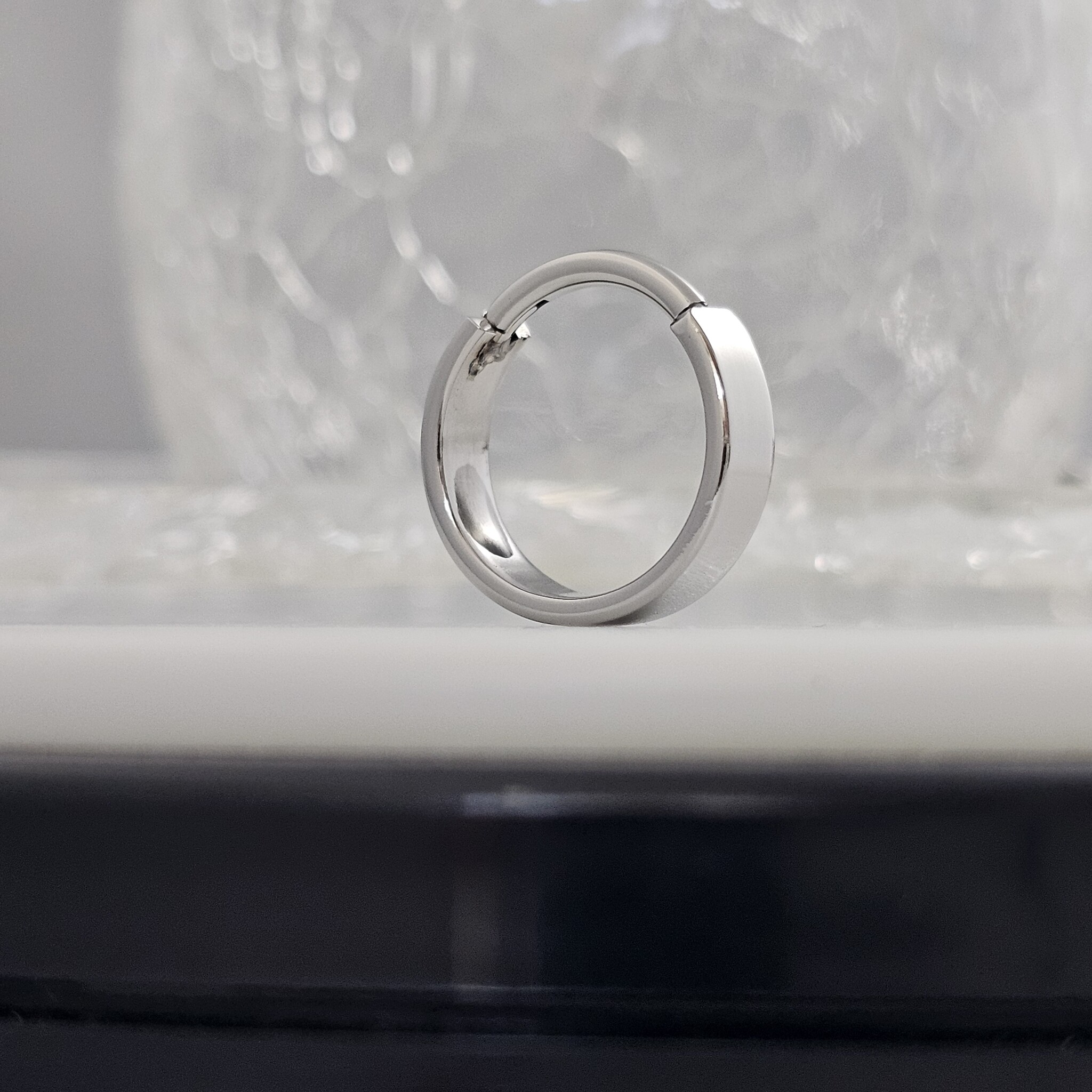 These chonky new cuff clickers are made with a thick and smooth Pure Niobium band and an F-136 titanium wearable surface that clicks shut easily. Most commonly seen in healed ear and nose piercings.