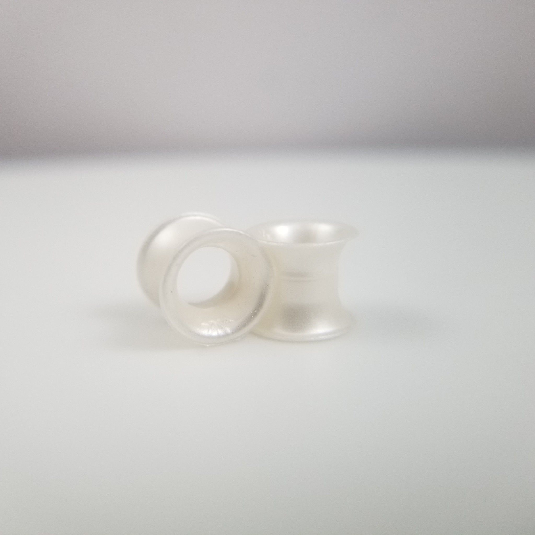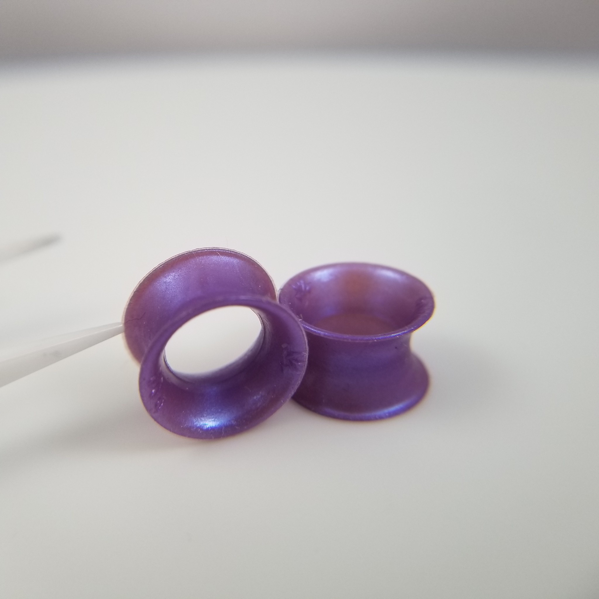 Medical grade silicone eyelet, ultra thin-wall with subtle flares. So comfortable it's almost like not wearing jewelry at all! We only recommend wearing silicone jewelry in well healed piercings.