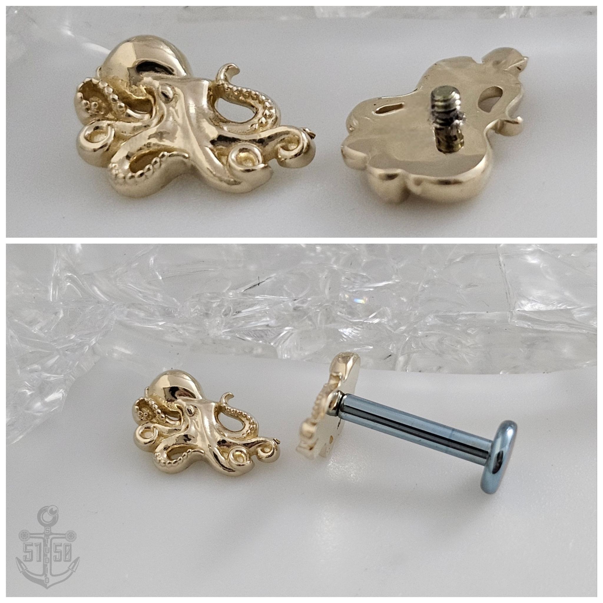 14k Solid Gold Octopus threaded end.