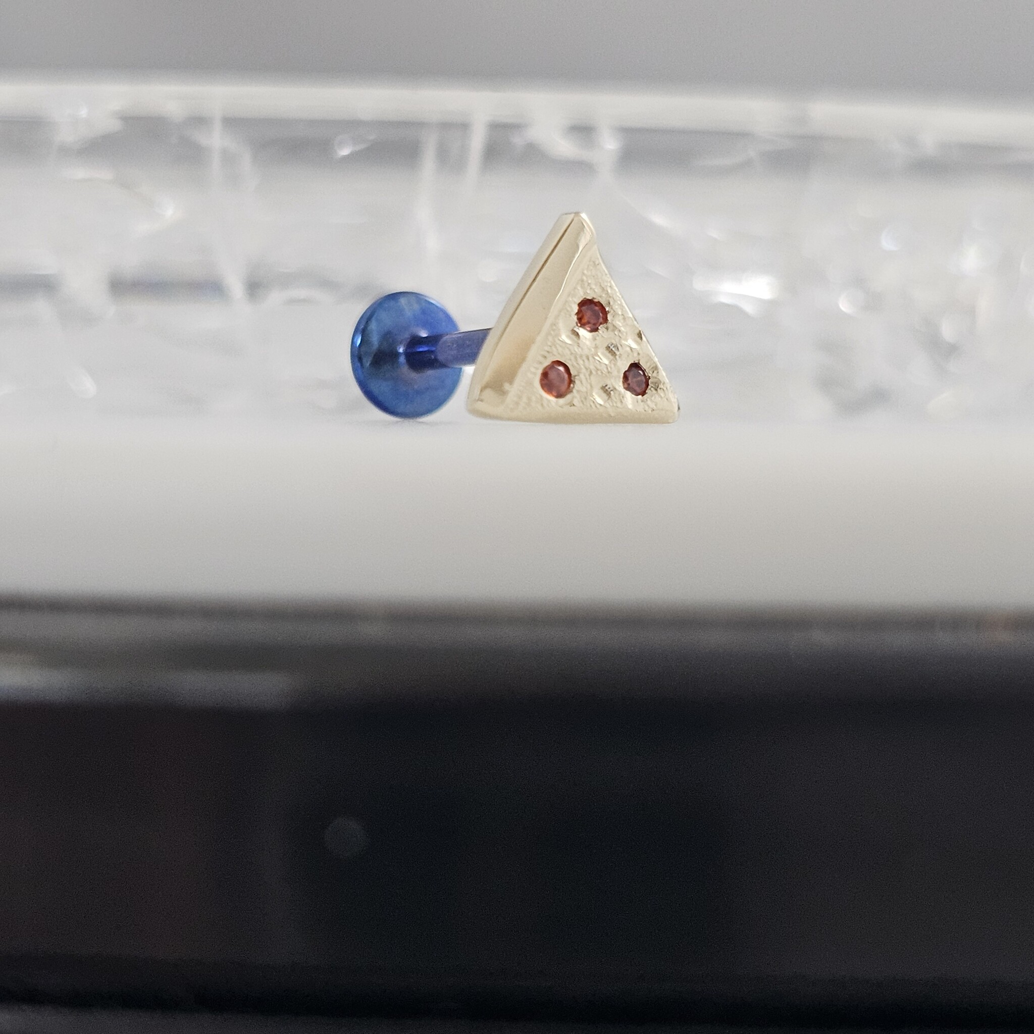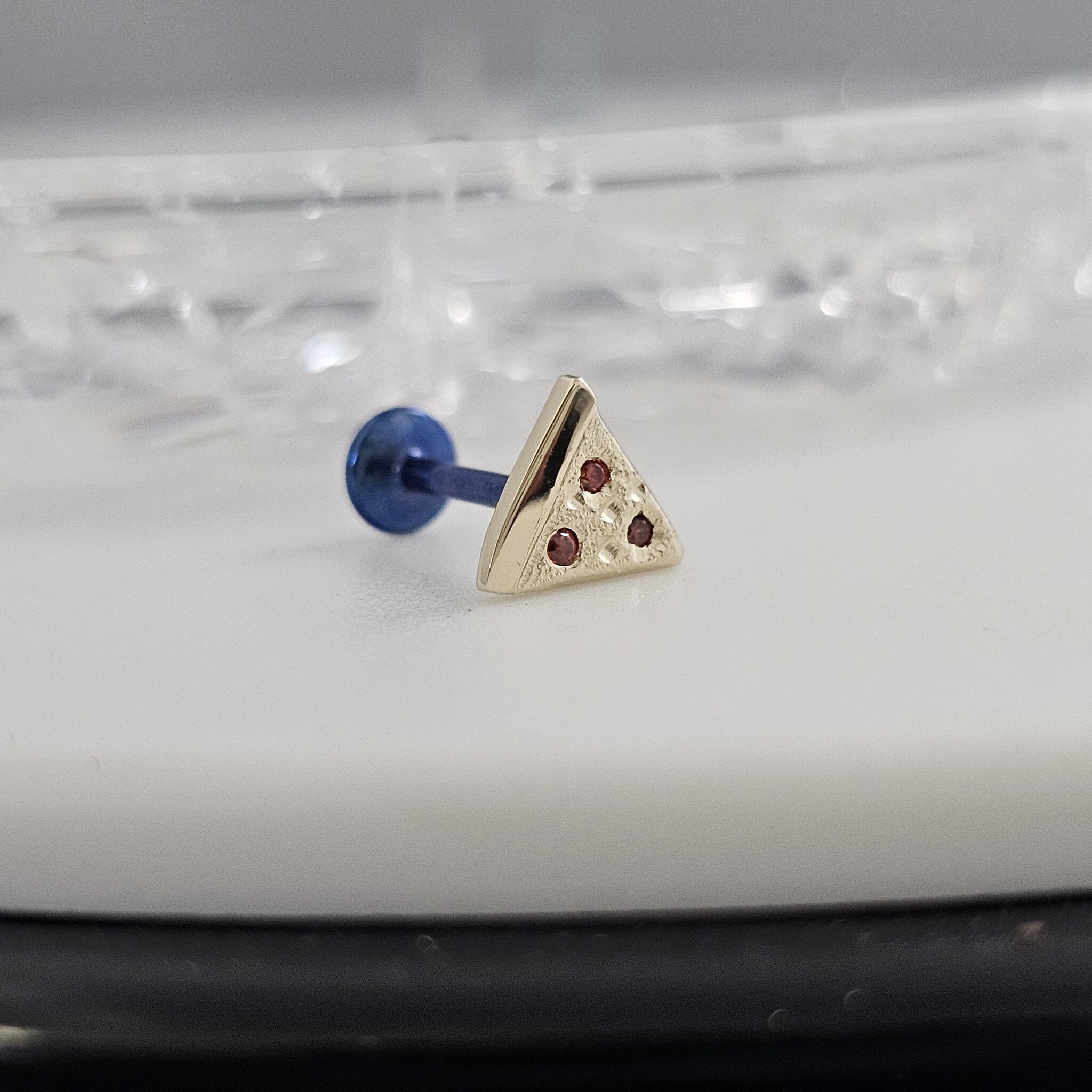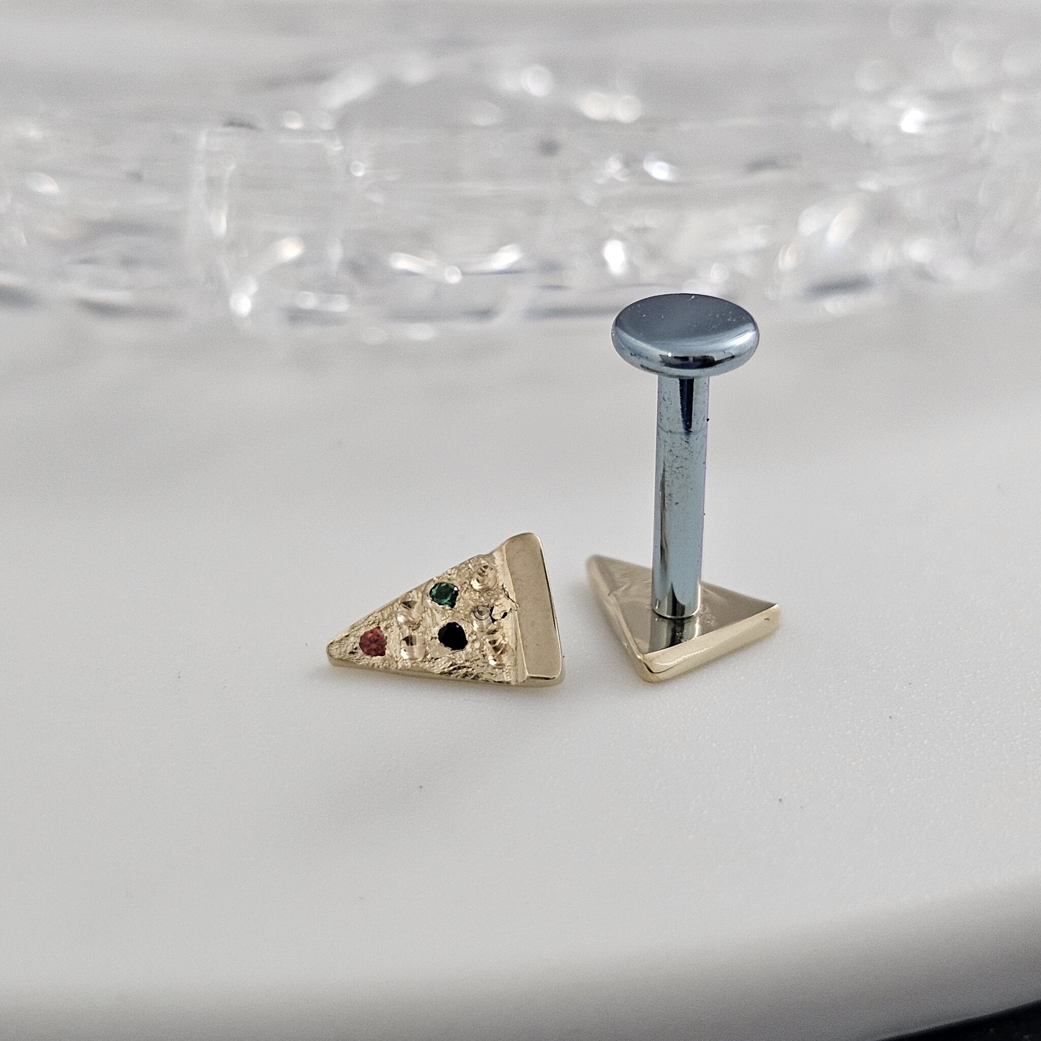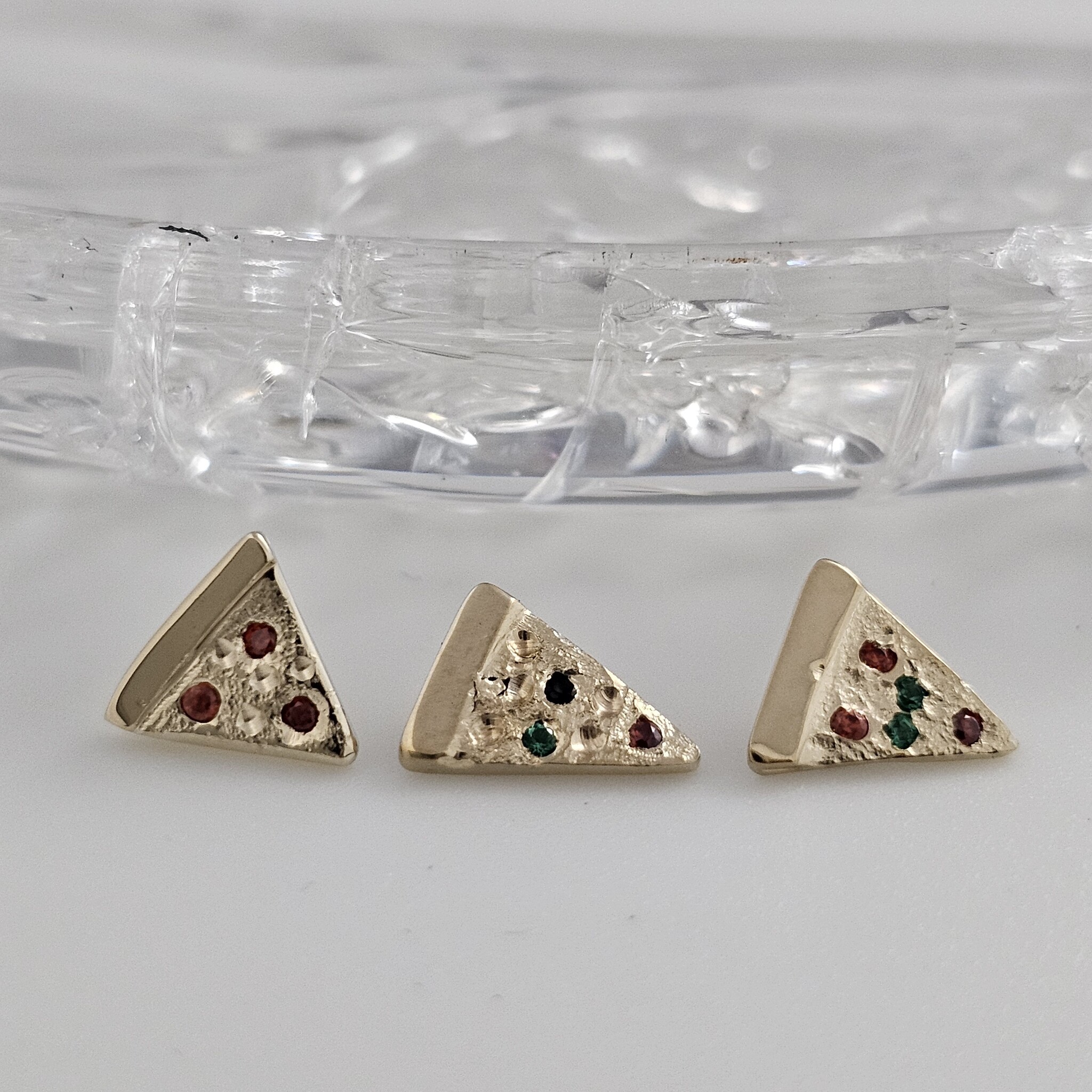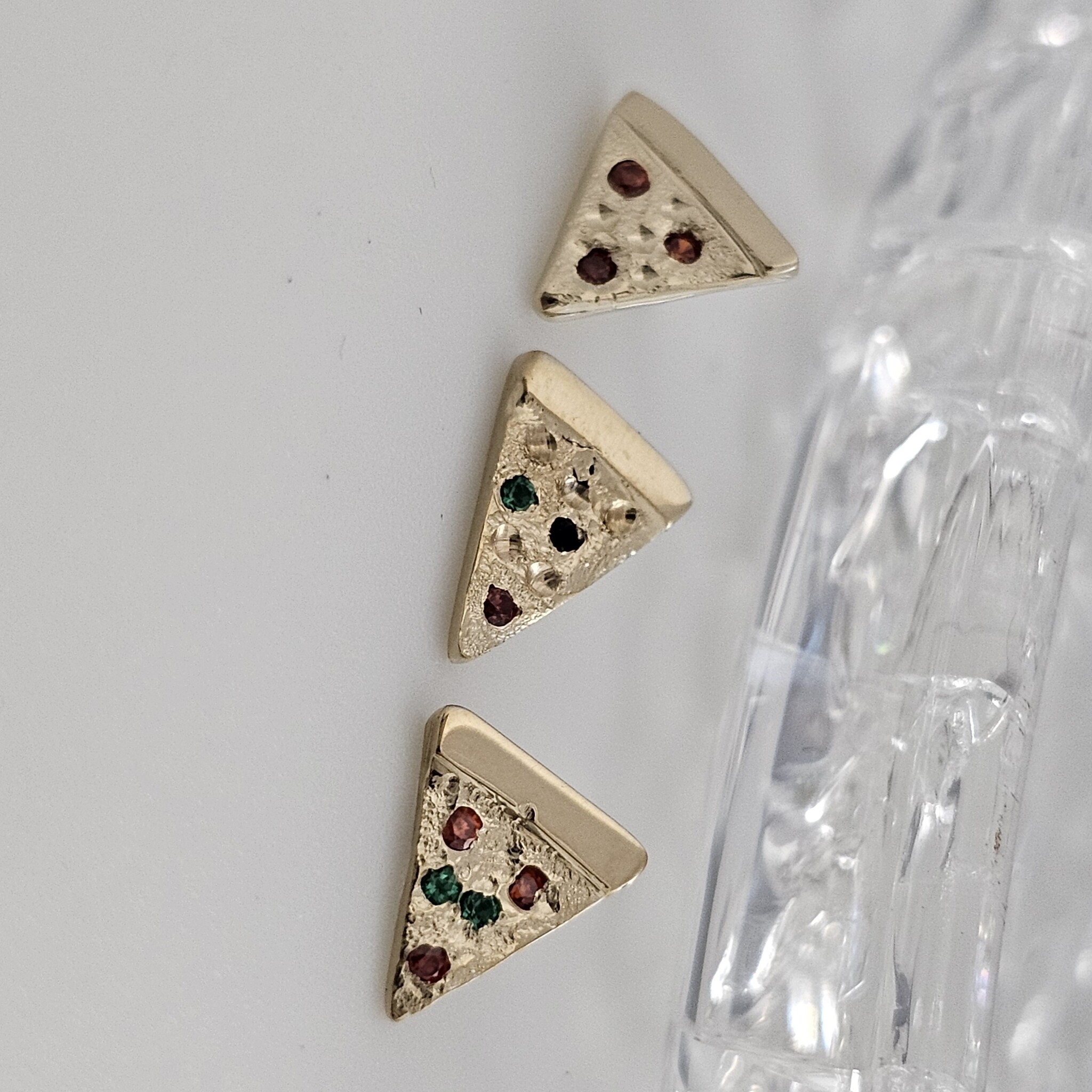 14k Solid Gold Pizza slice with hammered texture and rough set Swarovski crystals.